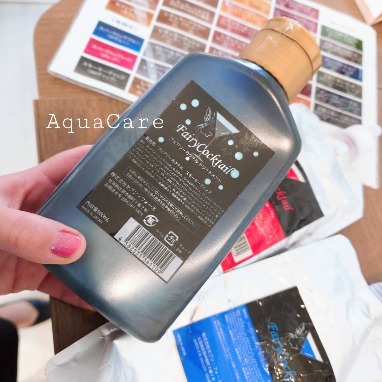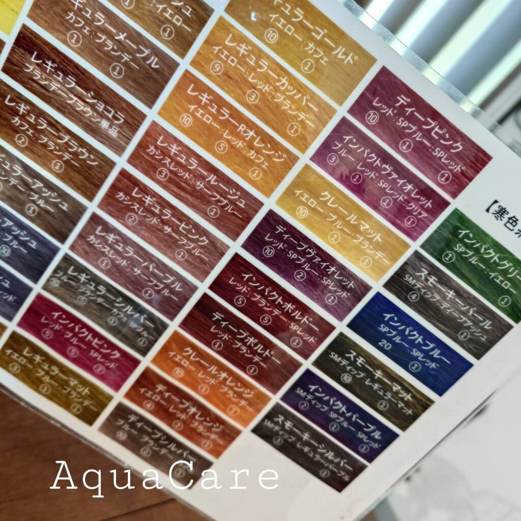 さて、今回はカクテルカラーについておはなしさせていただきたいのですが、その前に、現在アクアケアではカラーの種類として5社のメーカーをメインに扱わせていただいております。