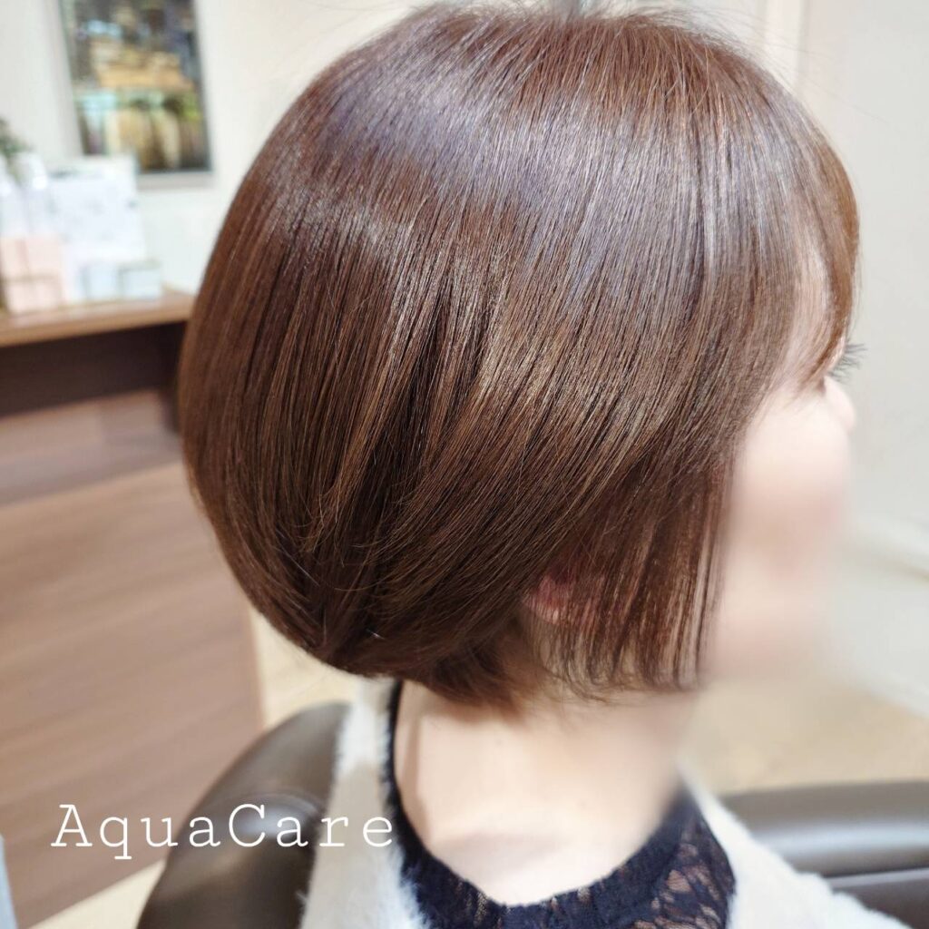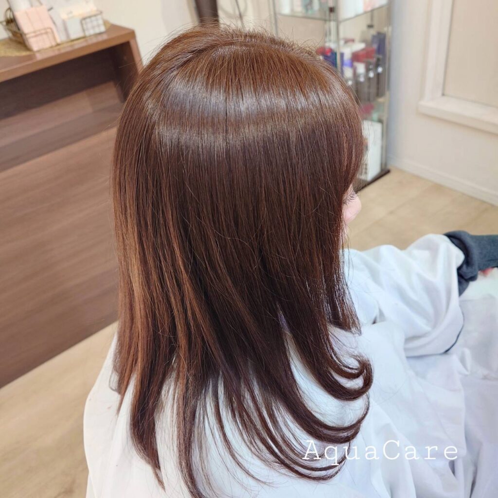 個人的にこのカラー大好きなんです。ダメージレスで色味も質感もやわらかく、艶と透明感が出るまさに美容液。