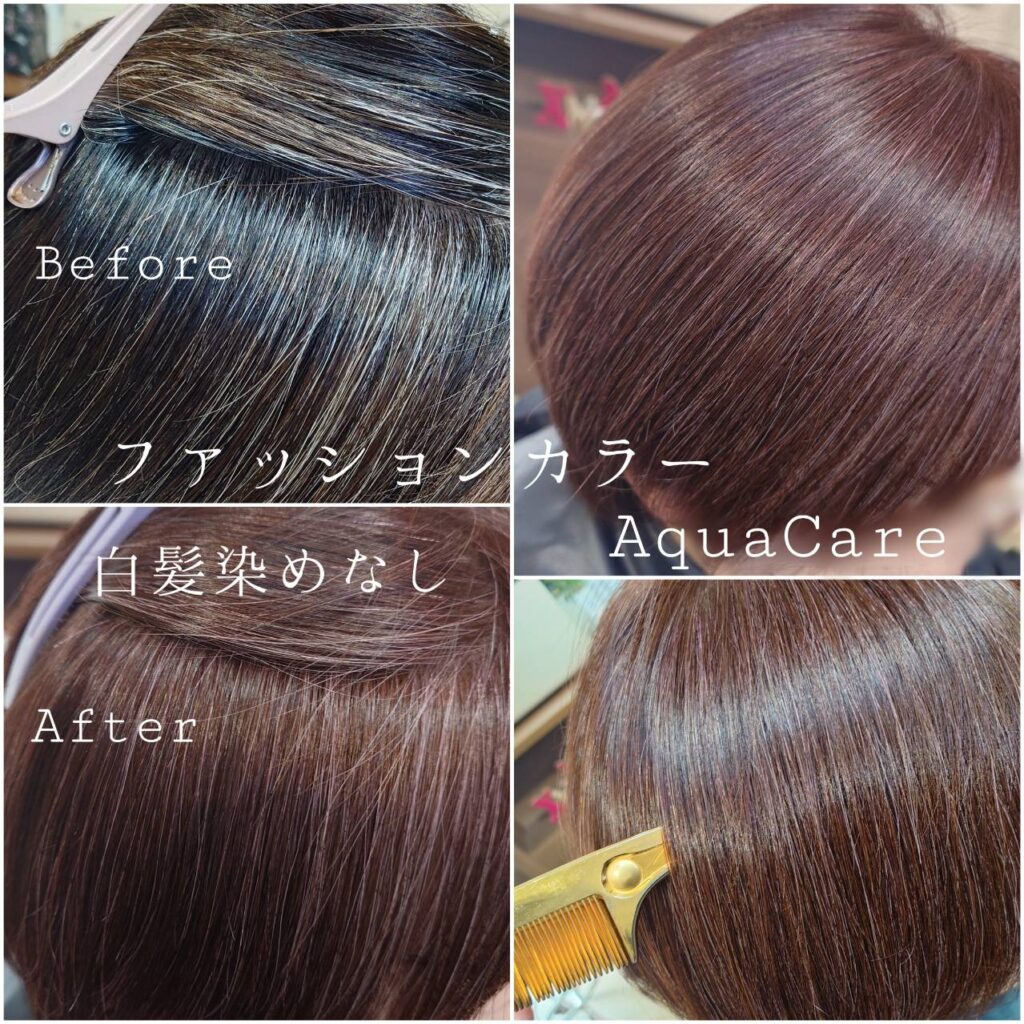 敏感肌でいらっしゃるのですが、カクテルカラー(白髪染め)だと痒みや赤みなどのトラブルもなく地肌も髪も調子が良いと、とても気に入ってくださっています。カクテルカラー歴の長いお方です。