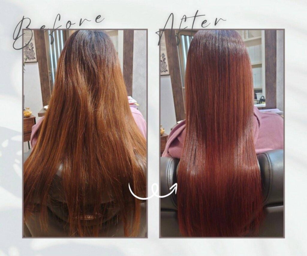 こちらのお客様の髪色を参考にされたそうです(右側)