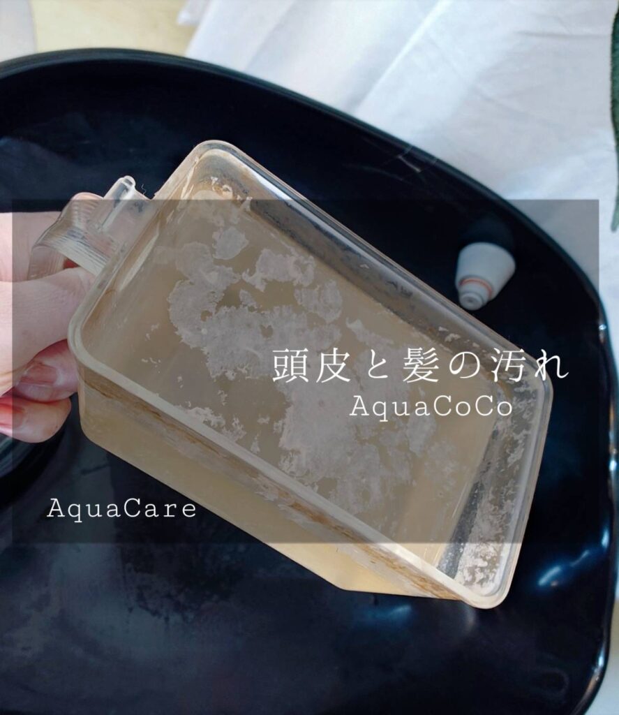 使用しているのはアクアココ(お水)のみ。皮脂・汚れをスッキリオフし頭皮環境をサポート。循環器で温めながら頭皮と髪の汚れを浮き出させます。